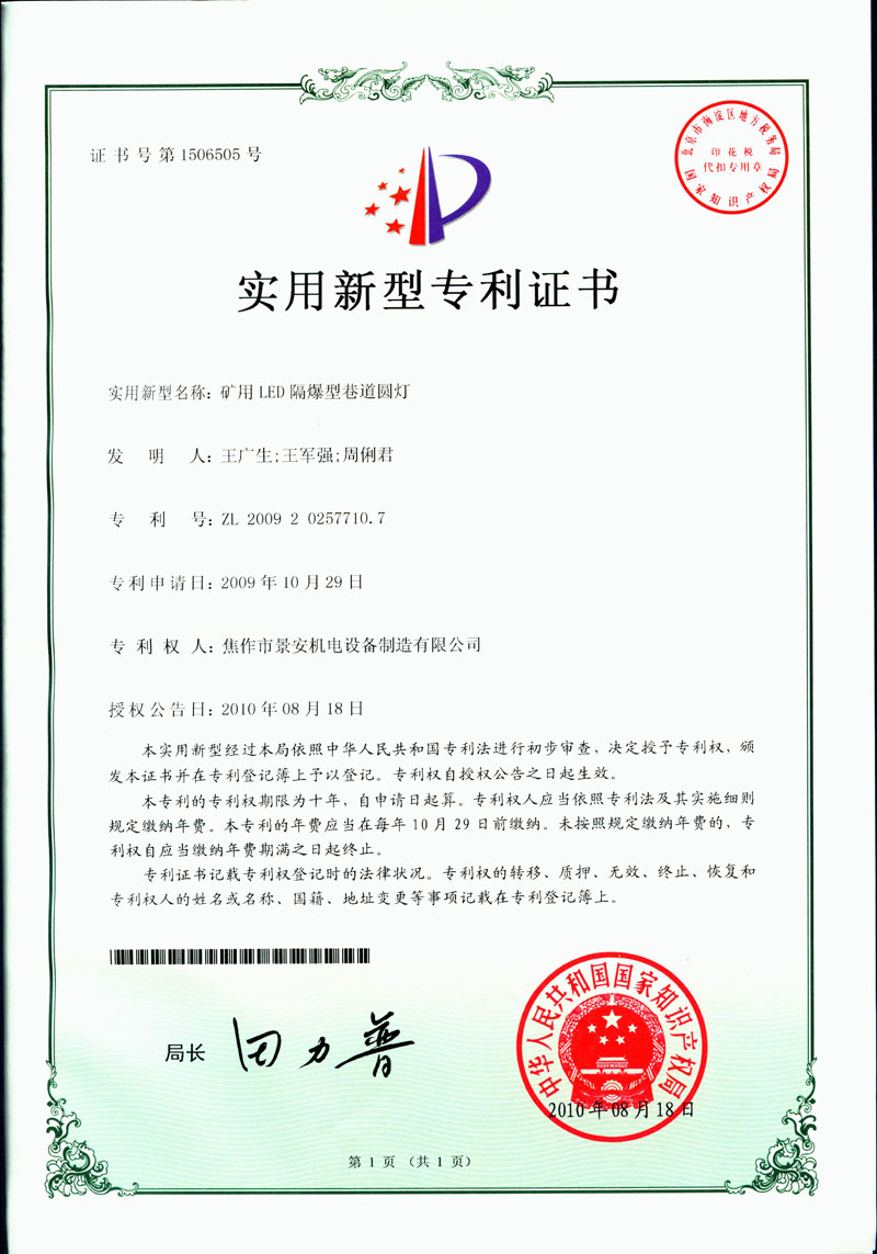 焦作景安公司始終堅(jiān)持“以科技為先導(dǎo),以市場(chǎng)為導(dǎo)向”的發(fā)展戰(zhàn)略,不斷進(jìn)行新產(chǎn)品的研制和開(kāi)發(fā),在國(guó)家“六五”到“九五”期間,承擔(dān)和參與了國(guó)家多項(xiàng)科技攻關(guān)項(xiàng)目。并被中國(guó)電器工業(yè)協(xié)會(huì)評(píng)定為“質(zhì)量可信產(chǎn)品”。特別是在礦用防爆燈領(lǐng)域,礦用隔爆型半導(dǎo)體(LED)照明燈具,2008年列入國(guó)家火炬計(jì)劃,獲2009年河南省工業(yè)和信息化廳的科技成果二等獎(jiǎng),并擁有多項(xiàng)國(guó)家專利。 |
